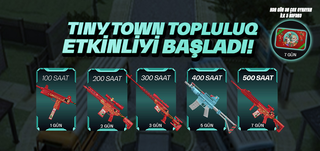 Bu bir qürur məsələsidir! Bütün döyüşçülərin her hafta Tiny Town xəritəsində keçirdiyi toplam vaxt hesablanacaq. Sayğac 500 saata çatdığında mükafatlar bütün sadiq döyüşçülərə açılacaq!