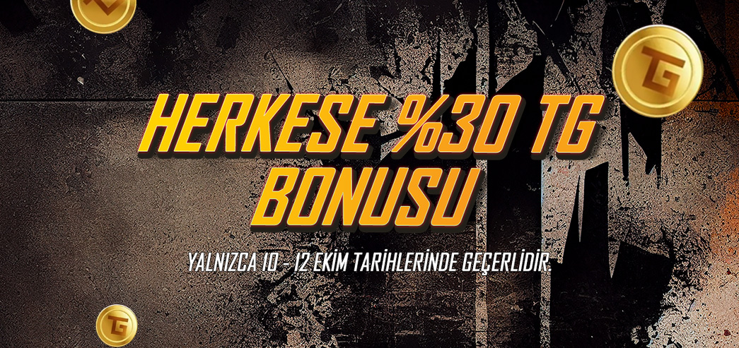 10 - 12 Ekim tarihleri arasında yapacağın ilk TG yüklemesine %30 BONUS seni bekliyor!