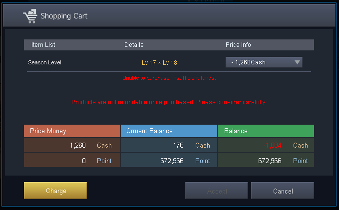 The TG amount for each level is different, and the purchase cost increases as the level increases.