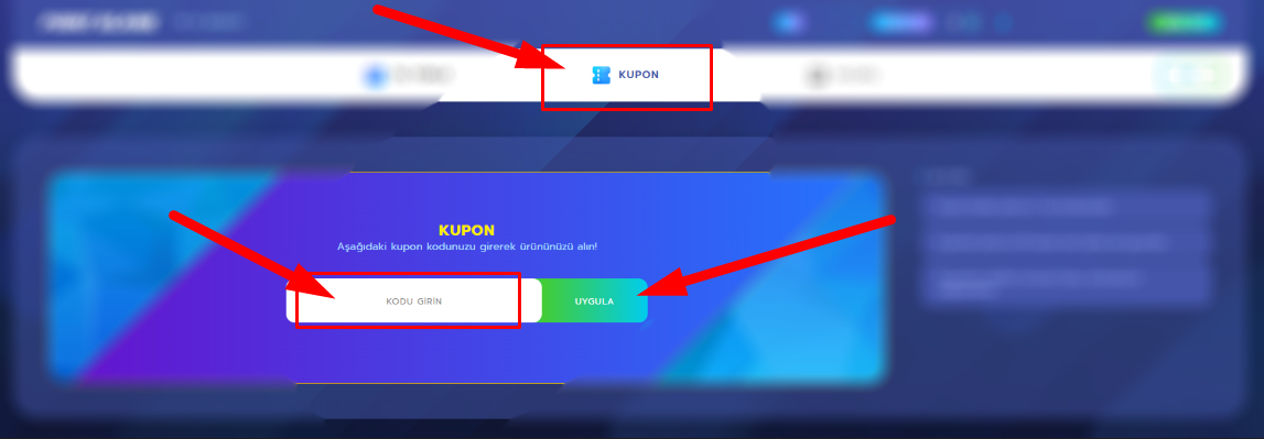 3. Kupon seçeneğine tıklayın ve kupon kodunu doğru şekilde girin.