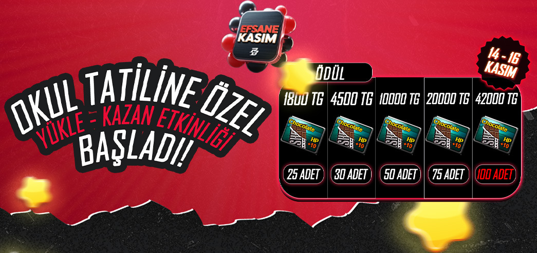 Yükleme yaptığınız TG tutarı kadar aşağıdaki ödülleri kazanabilirsiniz: