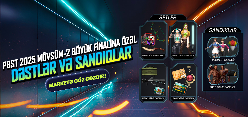 Turnir atmosferini hissedəcəyiniz bu özəl vaxtda,peşəkar səhnədən ilham alan paketlər və sandığlar %25 endirim ilə Oyun içi marketində satışda olacaq. Final həftəsinə layiqli fürsətlərlə bənzərsiz silahları, avadanlıqları və personajları geyin rəqabətə hazır ol!
