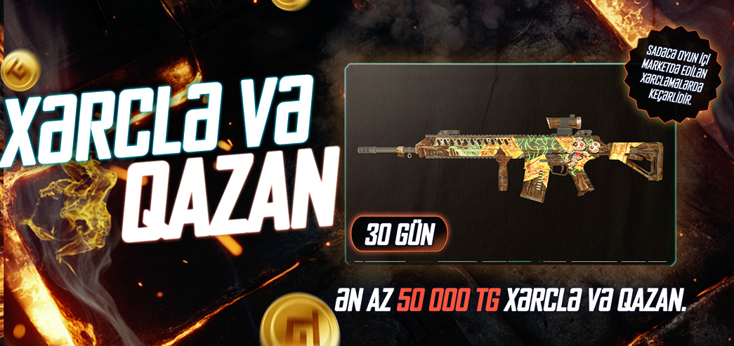 🎮 Mükafatı ala bilmək üçün müəyyən edilən tarixlər arasında oyun marketindən en əz 50.000 TG xərcləmən lazımdır.