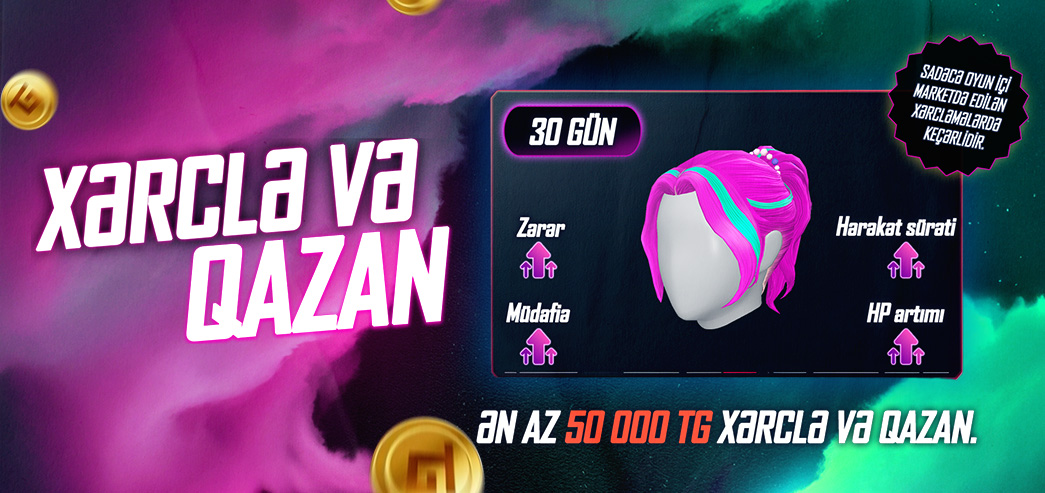 🎮 Mükafatı ala bilmək üçün müəyyən edilən tarixlər arasında oyun marketindən en əz 50.000 TG xərcləmən lazımdır.