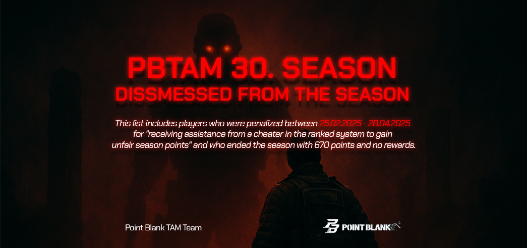 We would like to thank our Moderator team and all of you for your efforts in detecting cheaters throughout PBTAM Season 30.