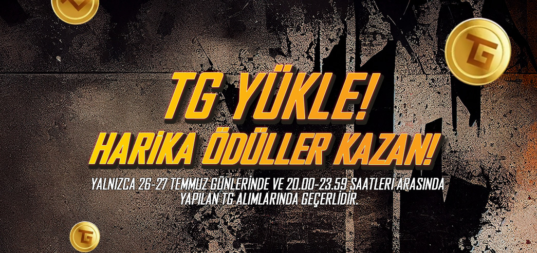 🎯 26-27 Temmuz tarihlerinde, saat 20:00 - 23:59 arasında yapacağın TG yüklemelerinde birbirinden özel ödüller seni bekliyor!