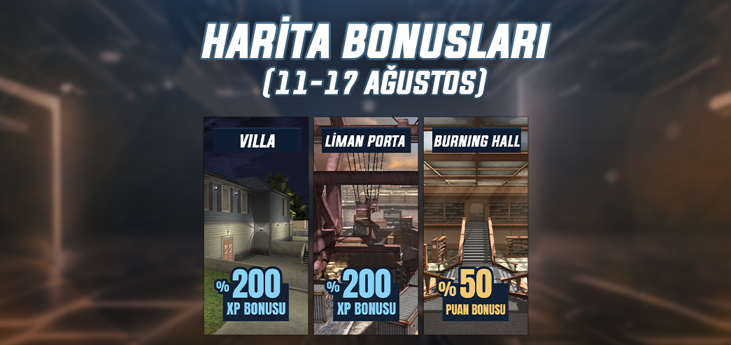 11 – 17 Ağustos tarihleri arasında seçili haritalarda büyük XP ve Puan bonusları seni bekliyor.