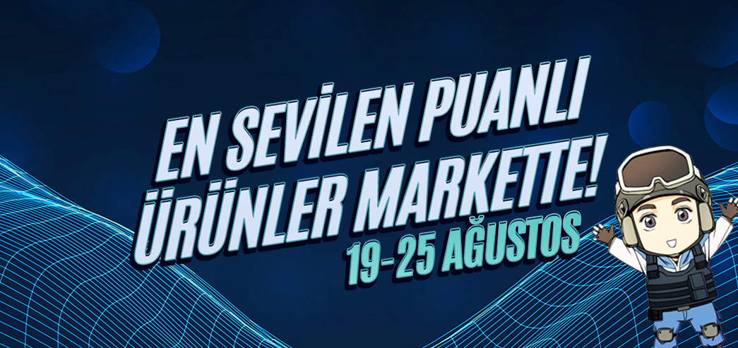 19 - 25 Ağustos tarihleri arasında, oyuncularımızdan yoğun ilgi gören en sevilen ürünler oyun içi markette puan ile satışa sunuluyor! 🎉