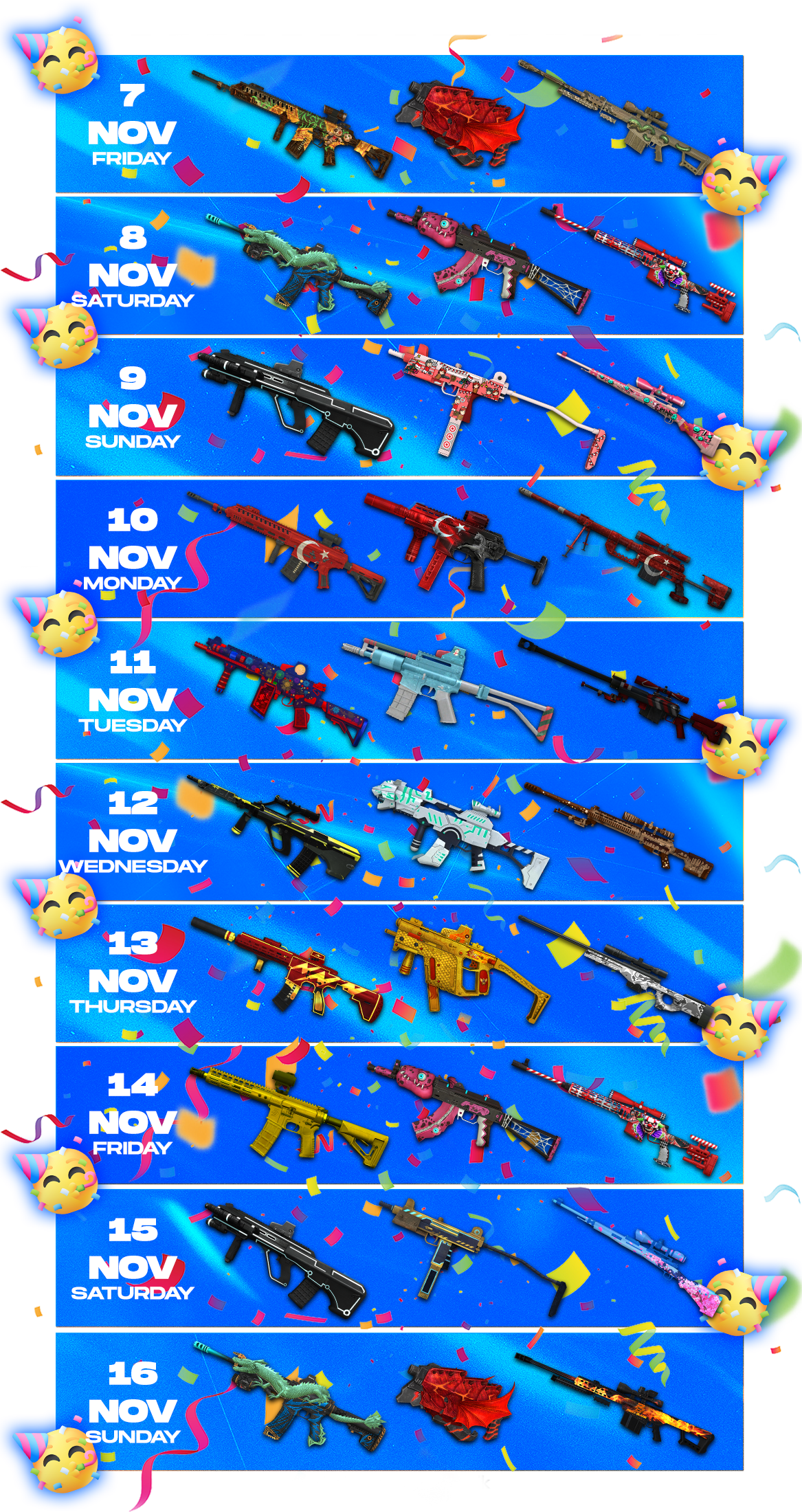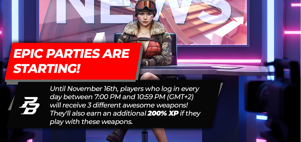 All players who log in to the game during the specified hours will instantly receive 3 different popular weapons every evening!