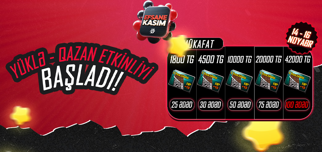 ⚡ Hədiyyələriniz, yükləmə etdikdən ən gec 3 iş günü içərisində hesabınıza yüklənəcəkdir.