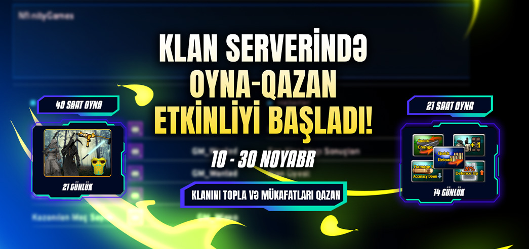 10 Noyabrda başlayan Klan Serverinə özəl Oyna Qazan etkinliyi,ən aktiv oyunçulara özəl bir-birindən dəyərli hədiyyələr təqdim edir.Tək etmən lazım olan: oyunda qalmaq və döyüşmək!